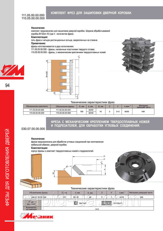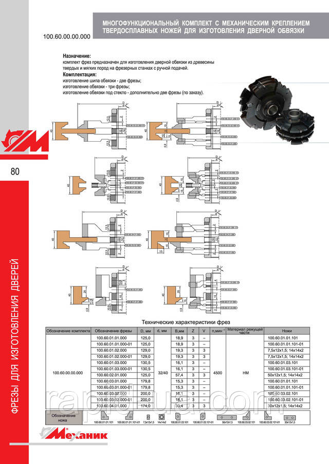 Фрези для виготовлення дверної коробки з механічним кріпленням твердосплавних ножів.
