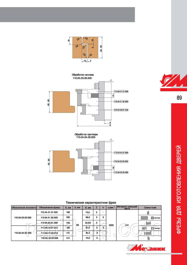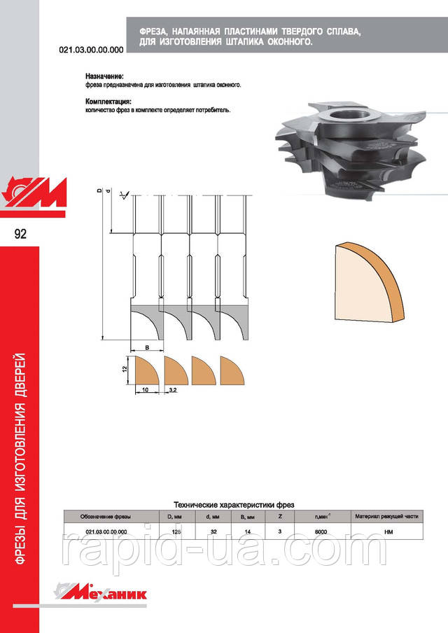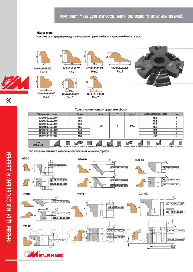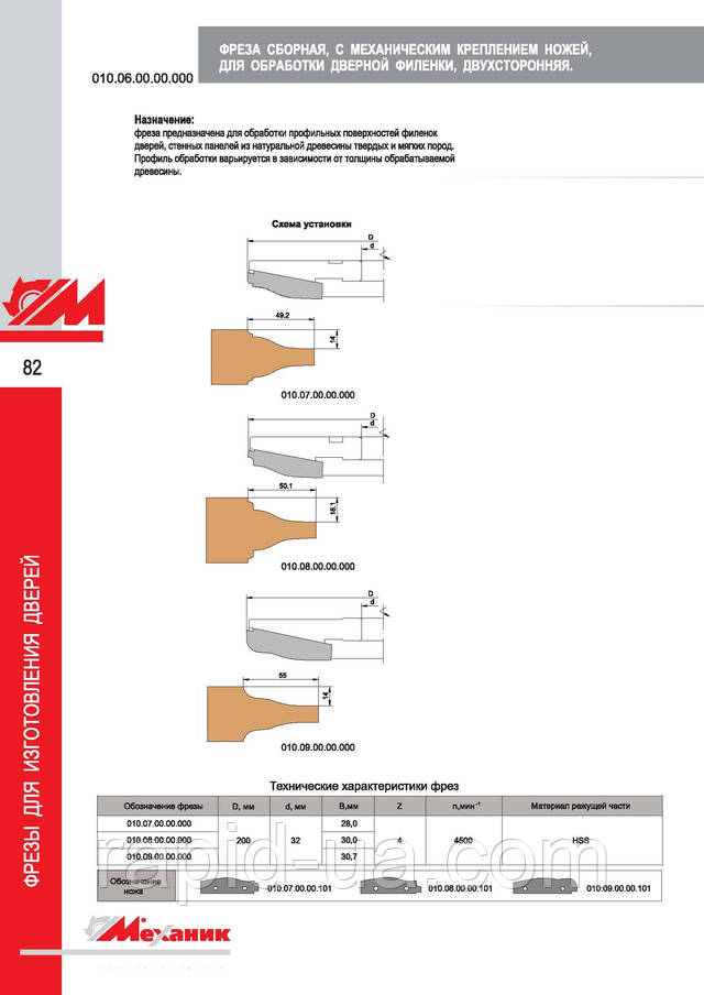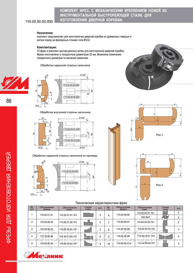 Фрези для виготовлення дверної коробки з механічним кріпленням ножів з інструментальної швидкорізальної сталі .